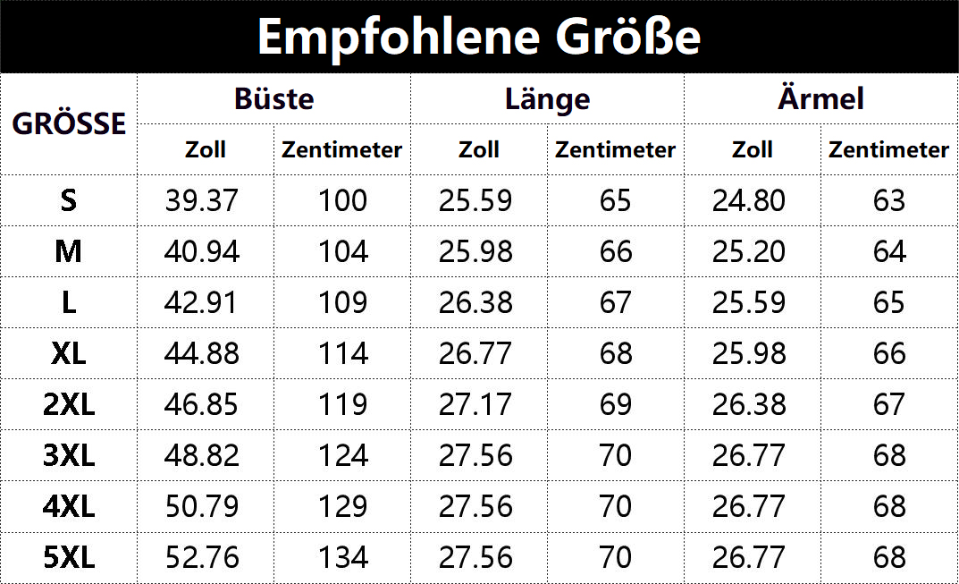 • Vorschlag:* Diese Daten wurden aus der manuellen Messung des Produkts erhalten, es kann um 0,03-0,06 ZOLL/1-3 CM aus geschaltet sein
