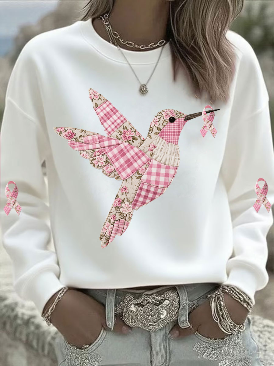 Damen Sweatshirt mit rosa Kolibri bedruckt