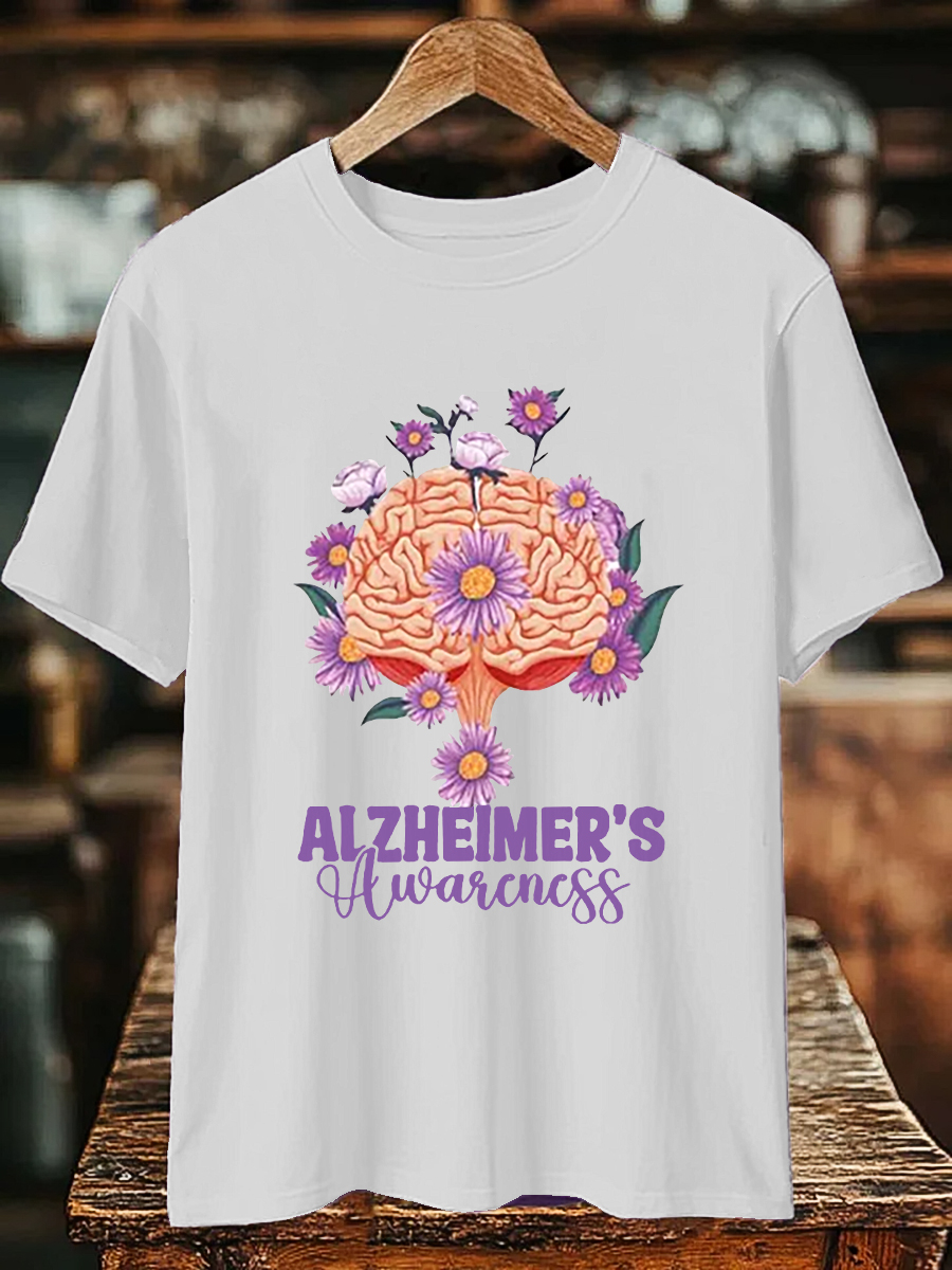 Frauen Alzheimer-Bewusstsein Blumen bedrucktes Kurzarm-T-Shirt
