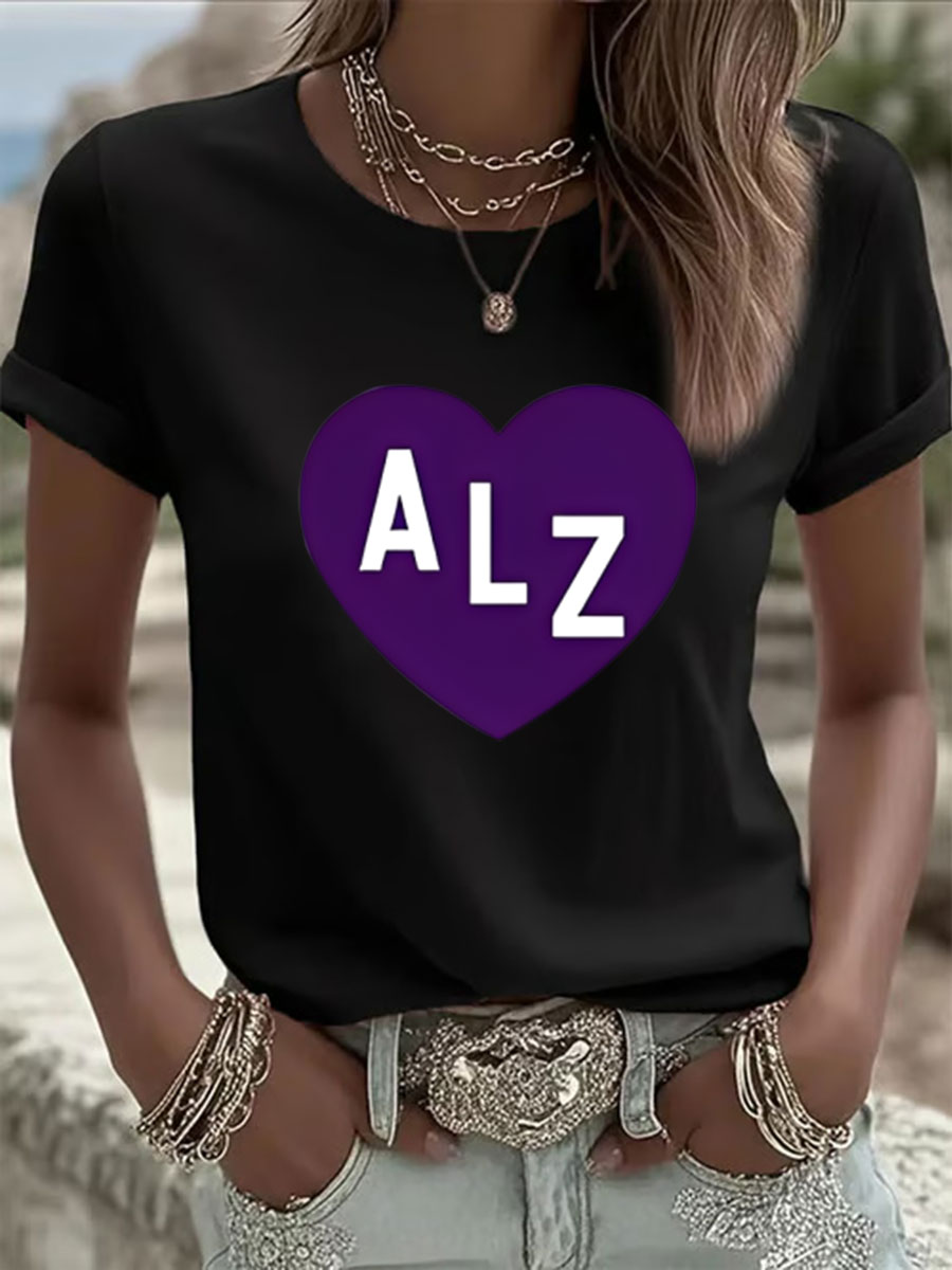 Frauen Alzheimer-Bewusstsein Herz druck Casual T-Shirt