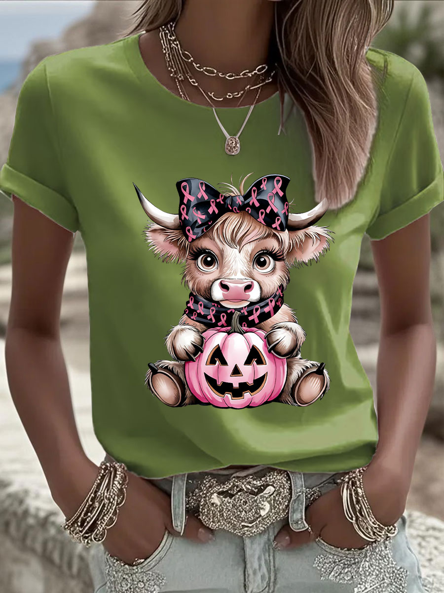 Frauen Brustkrebs Bewusstsein Highland Kuh Print Casual T-Shirt