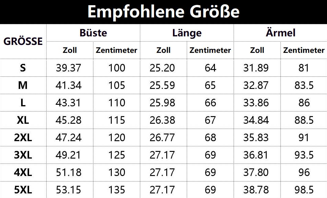 • Vorschlag:* Diese Daten wurden aus der manuellen Messung des Produkts erhalten, es kann um 0,03-0,06 ZOLL/1-3 CM aus geschaltet sein