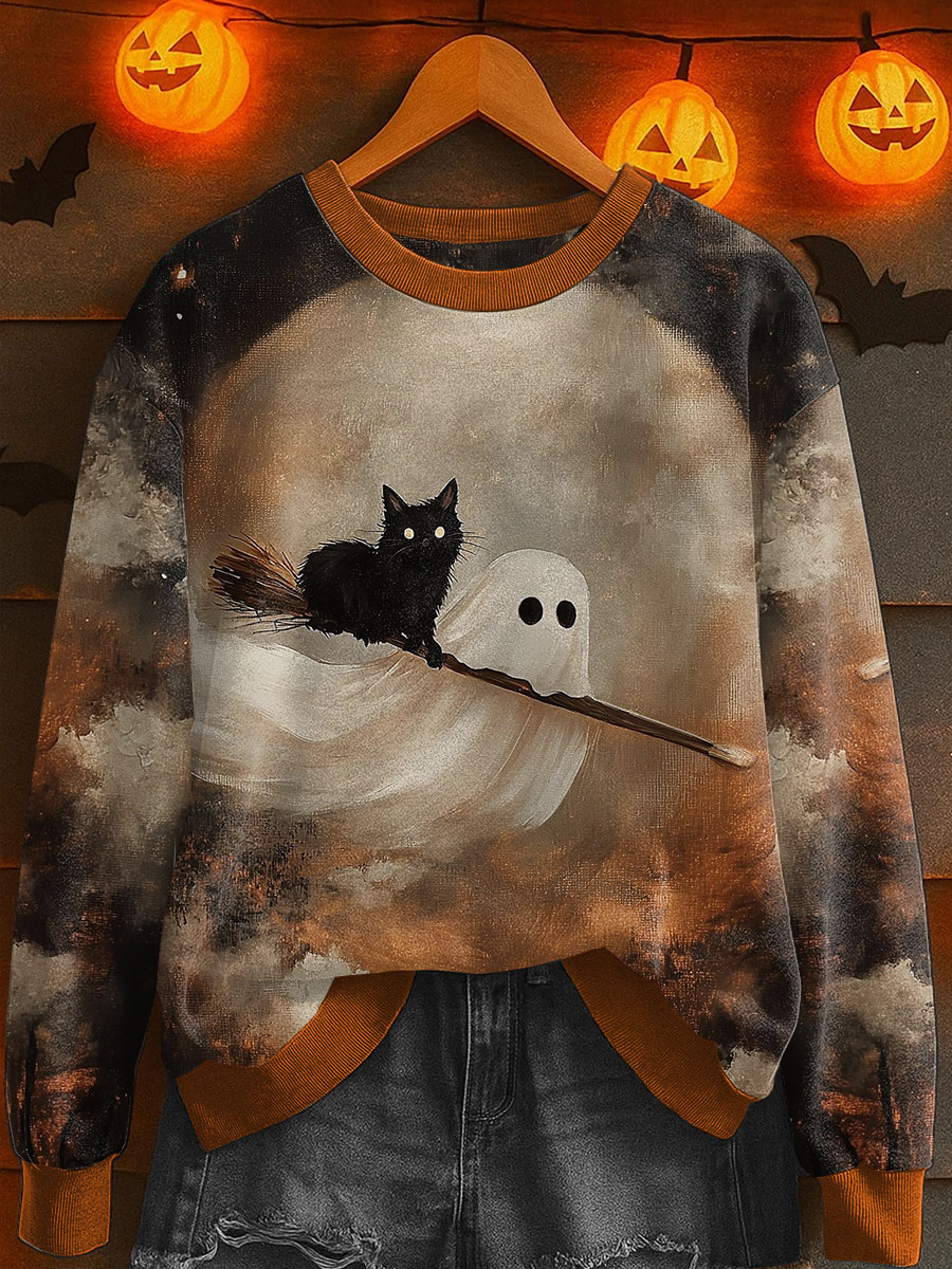 Frauen Halloween Geist schwarze Katze Sweatshirts