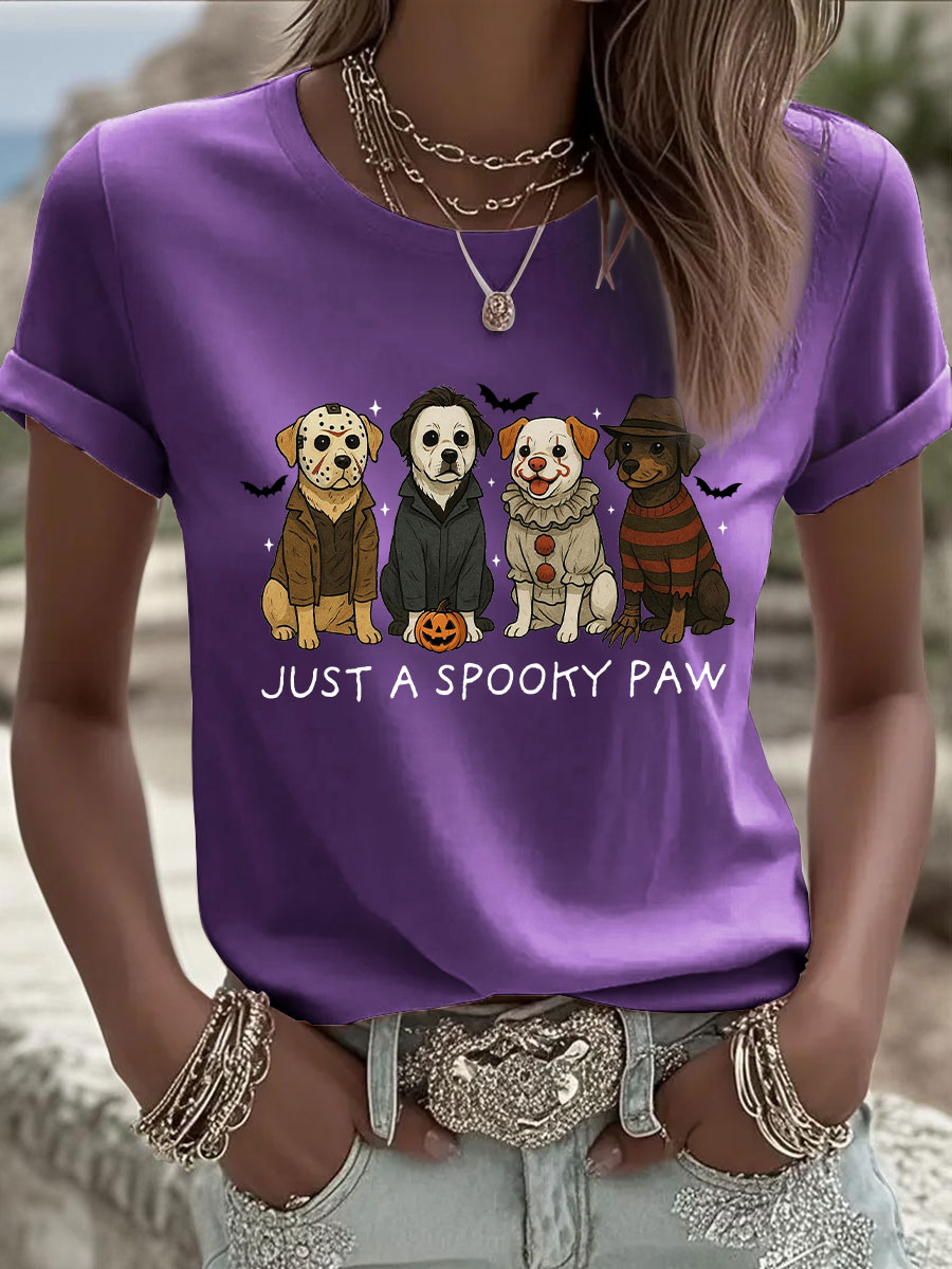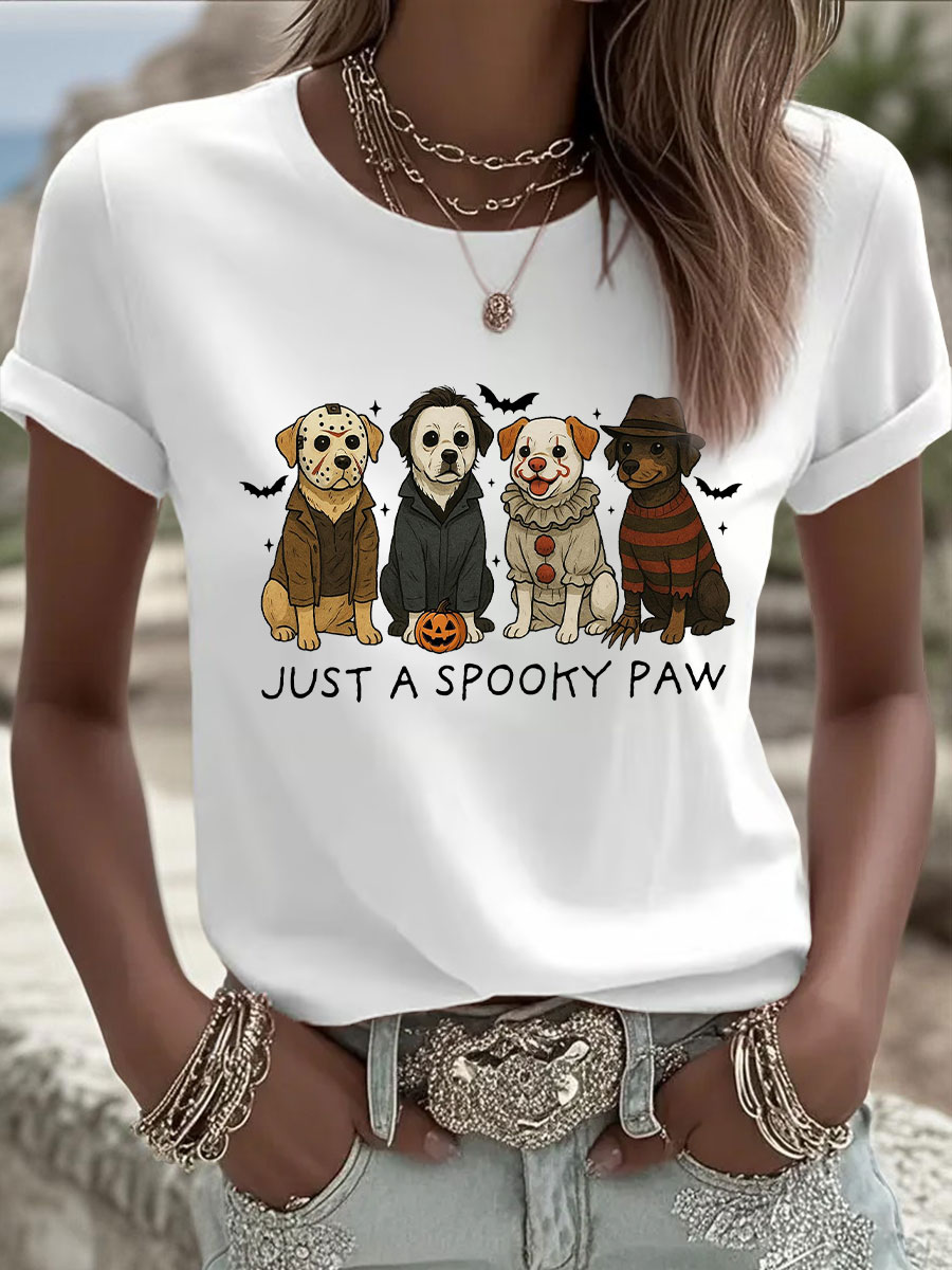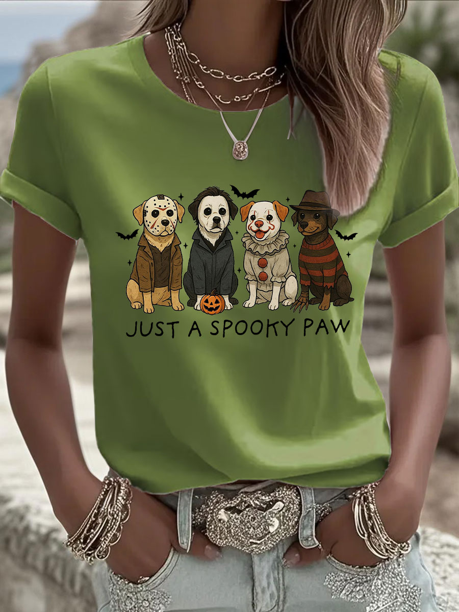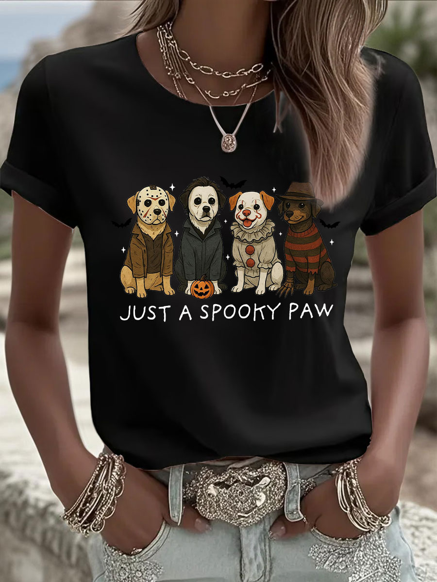 Frauen Halloween nur ein gruseliges Paw Print Casual T-Shirt