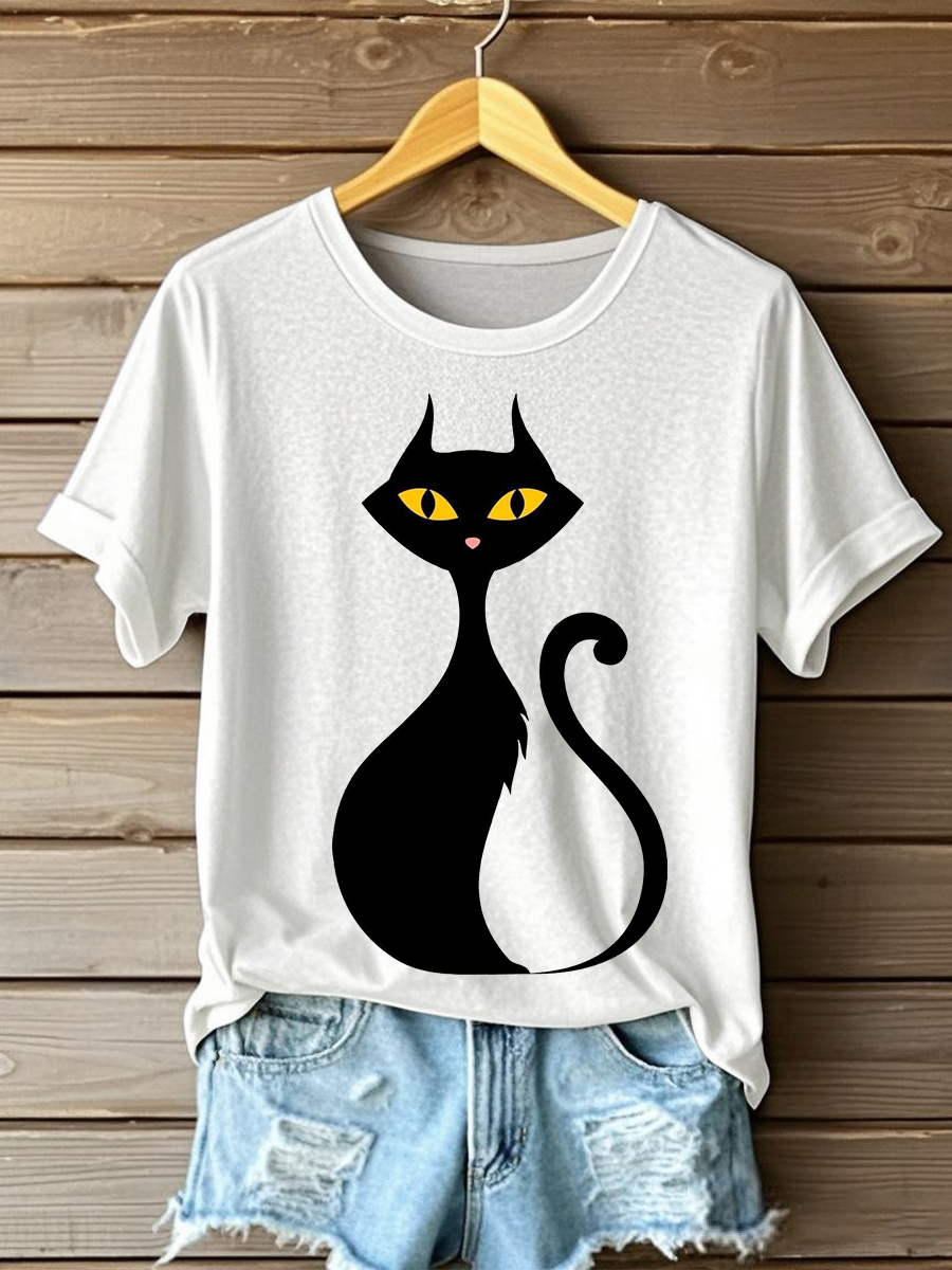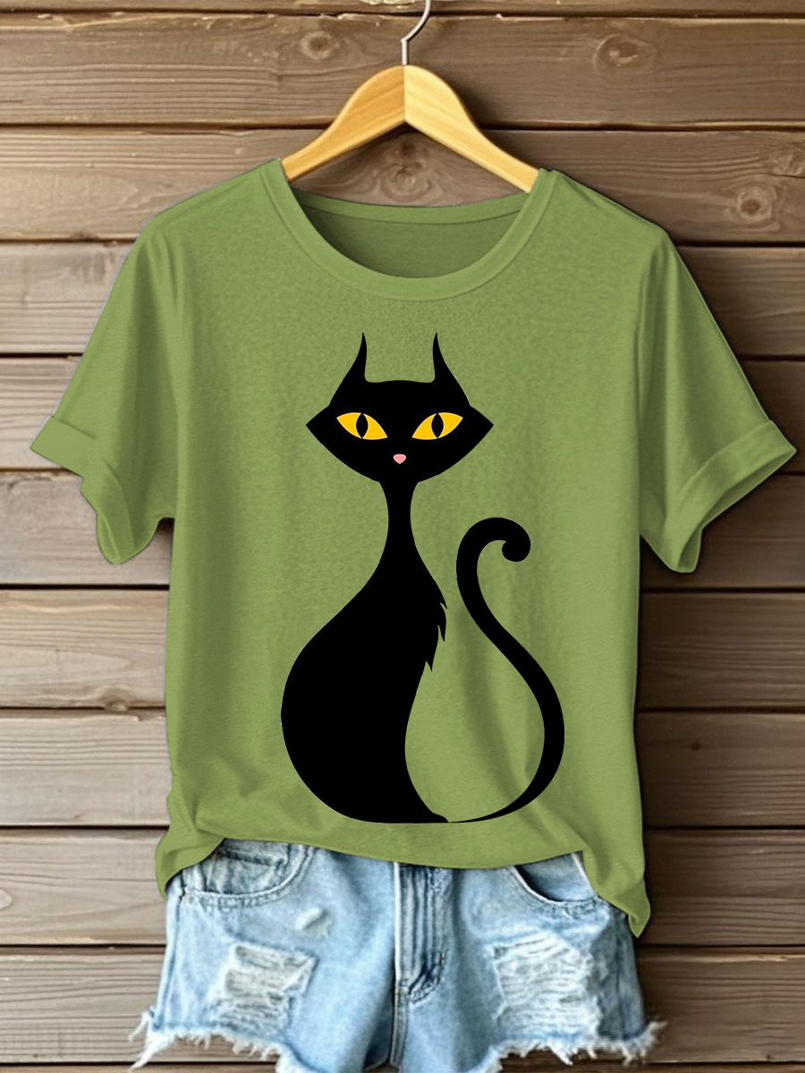 Frauen Halloween schwarze Katze Kurzarm T-Shirt