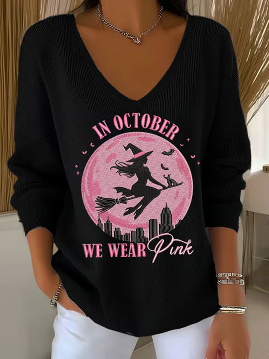 Frauen im Oktober tragen wir rosa bedrucktes Casual Top