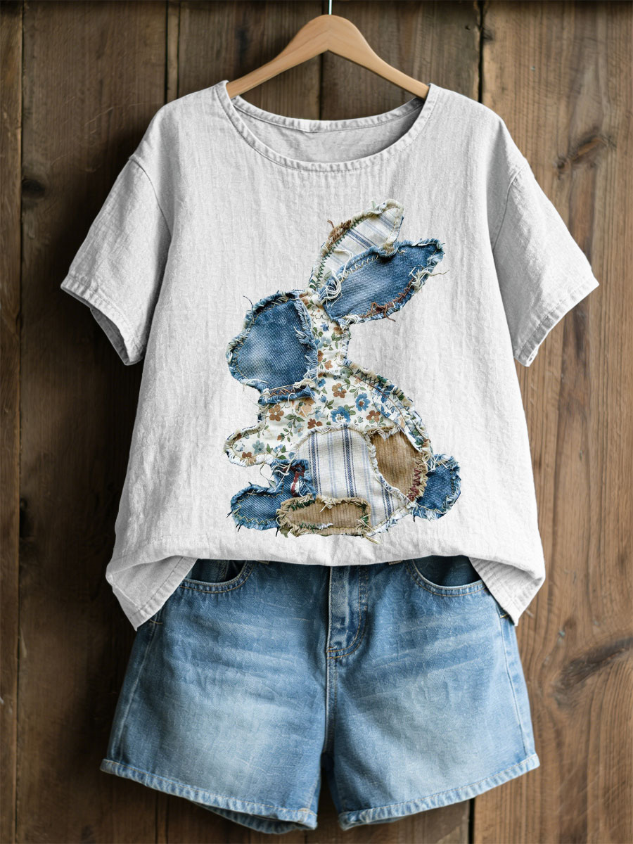 Frauen Kaninchen Patchwork Kunstdruck Casual Top