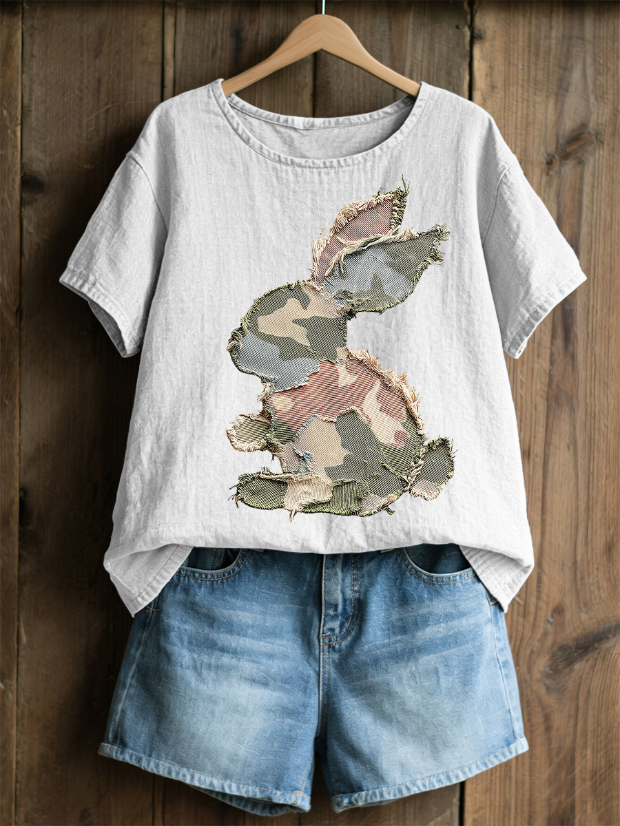 Frauen Kaninchen Patchwork Kunstdruck Casual Top