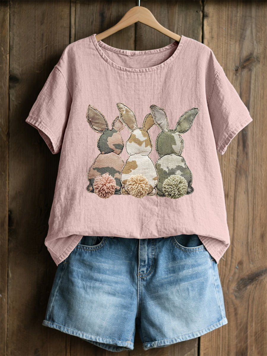 Frauen Kaninchen Patchwork Kunstdruck Casual Top