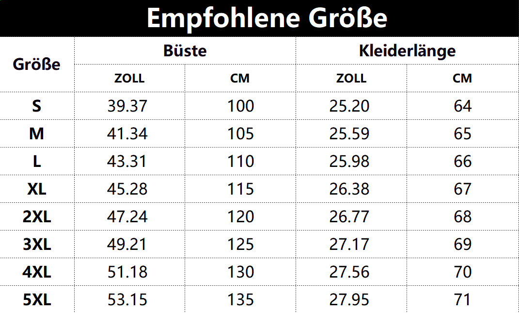 • Vorschlag:* Diese Daten wurden aus der manuellen Messung des Produkts erhalten, es kann um 0,03-0,06 ZOLL/1-3 CM aus geschaltet sein