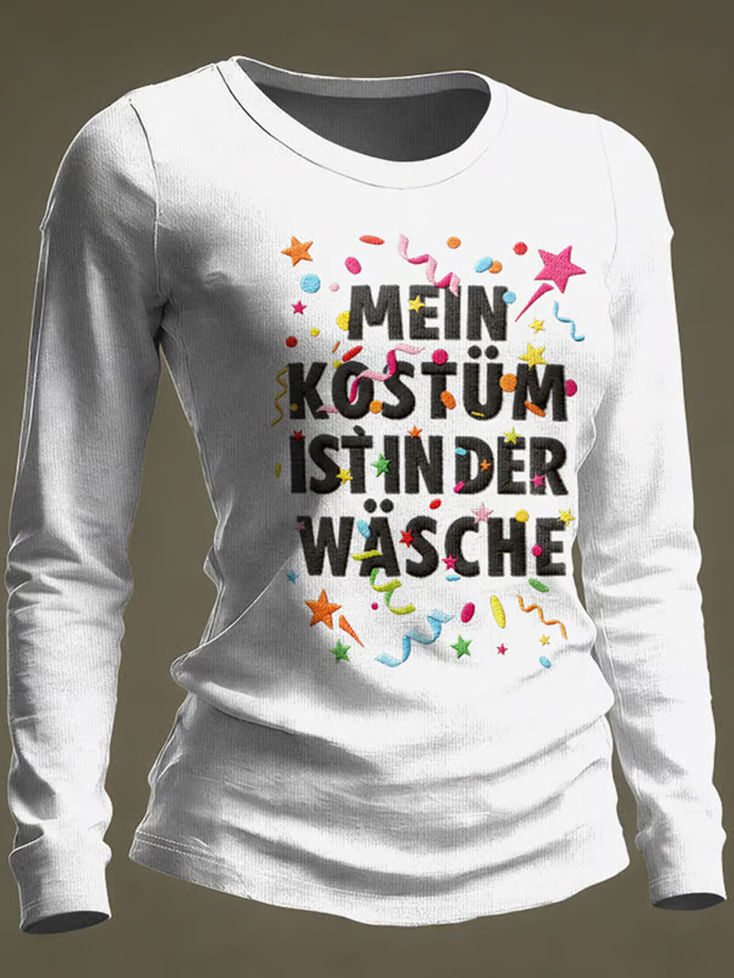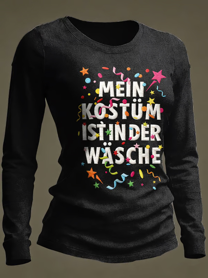 Frauen Köln Karneval Print Freizeit Waffel Langarm T-Shirt