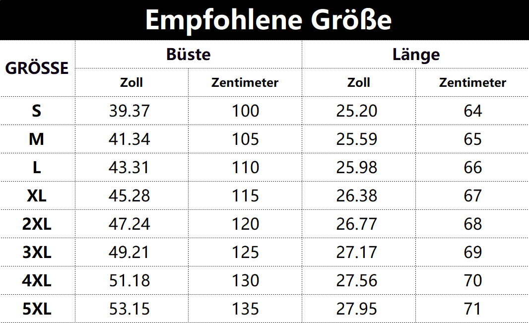 - Vorschlag:* Diese Daten wurden aus der manuellen Messung des Produkts erhalten, es kann um 0,03-0,06 ZOLL/1-3 CM aus geschaltet sein