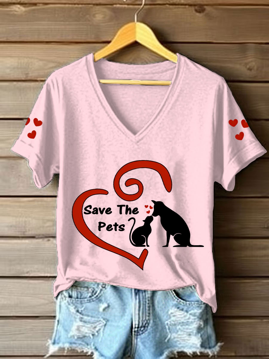 Frauen retten die Haustiere V-Ausschnitt T-Shirts