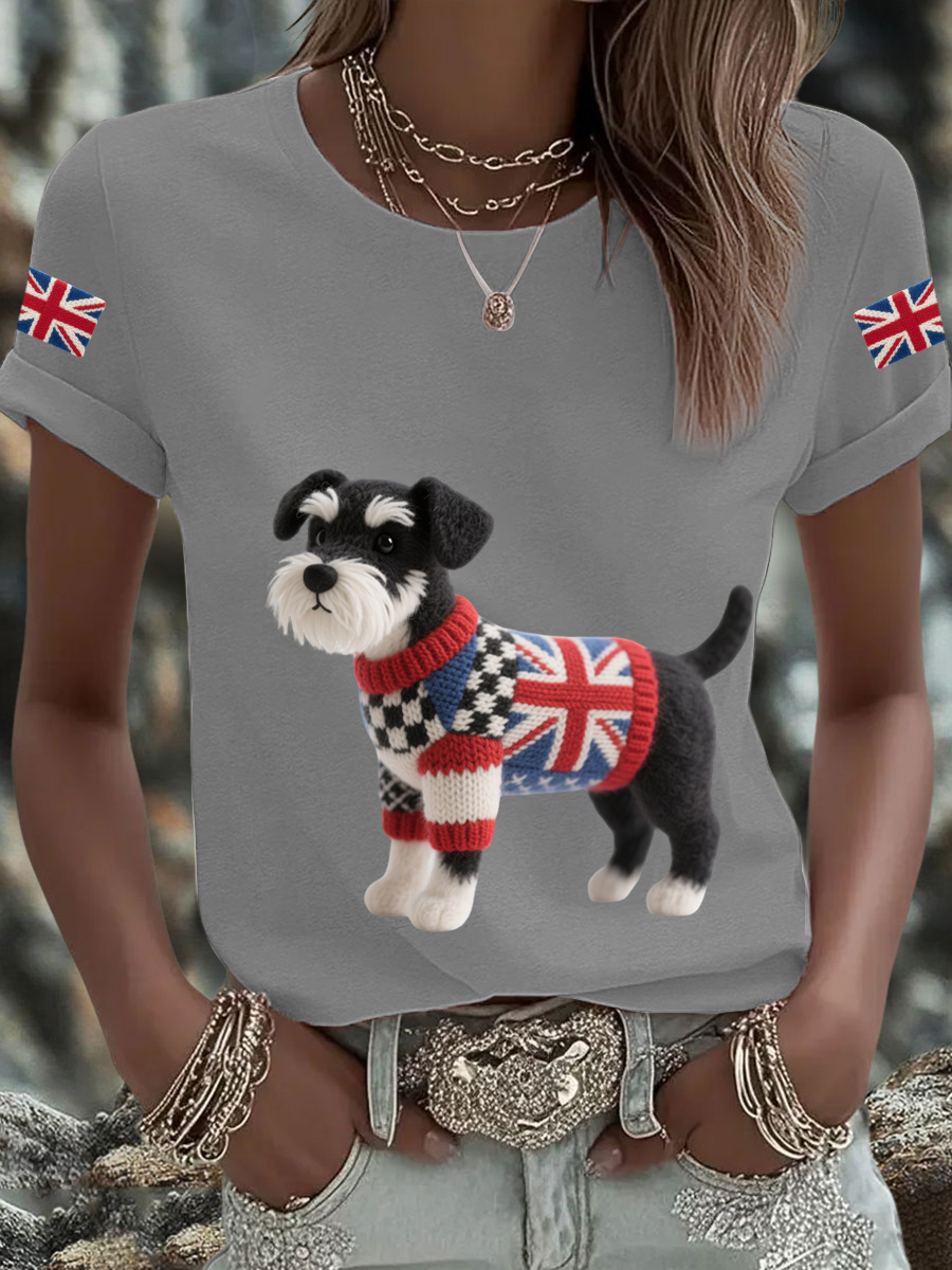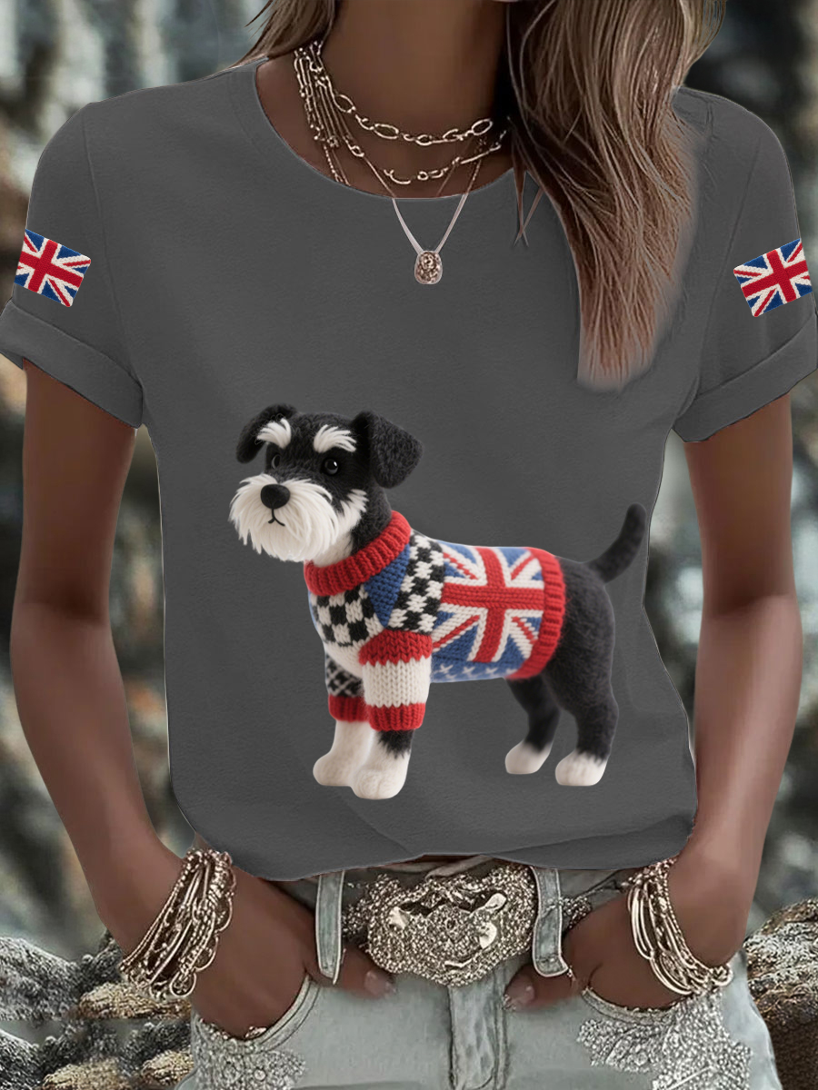 Frauen UK Flagge Schnauzer Bedrucktes T-Shirt