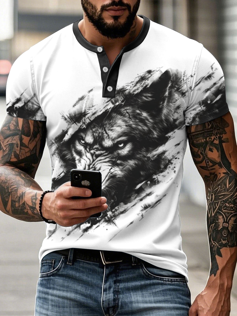 Freizeit-T-Shirts mit Wolfs druck für Männer