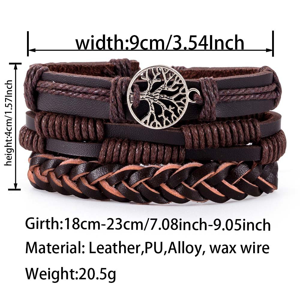 Herren baum des Lebens Vintage gewebtes personal isiertes Leder armband dreiteiliges Set