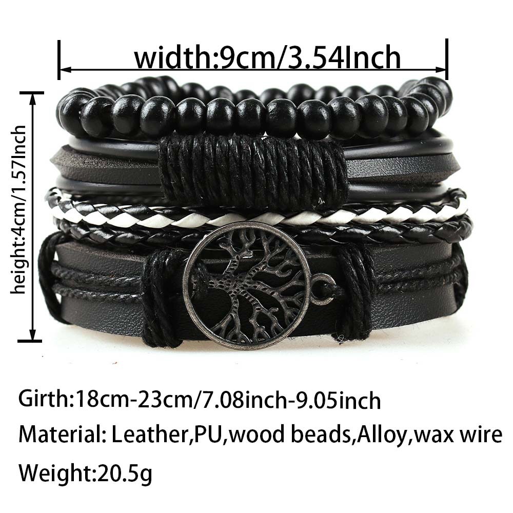 Herren baum des Lebens Vintage gewebtes personal isiertes Leder armband dreiteiliges Set