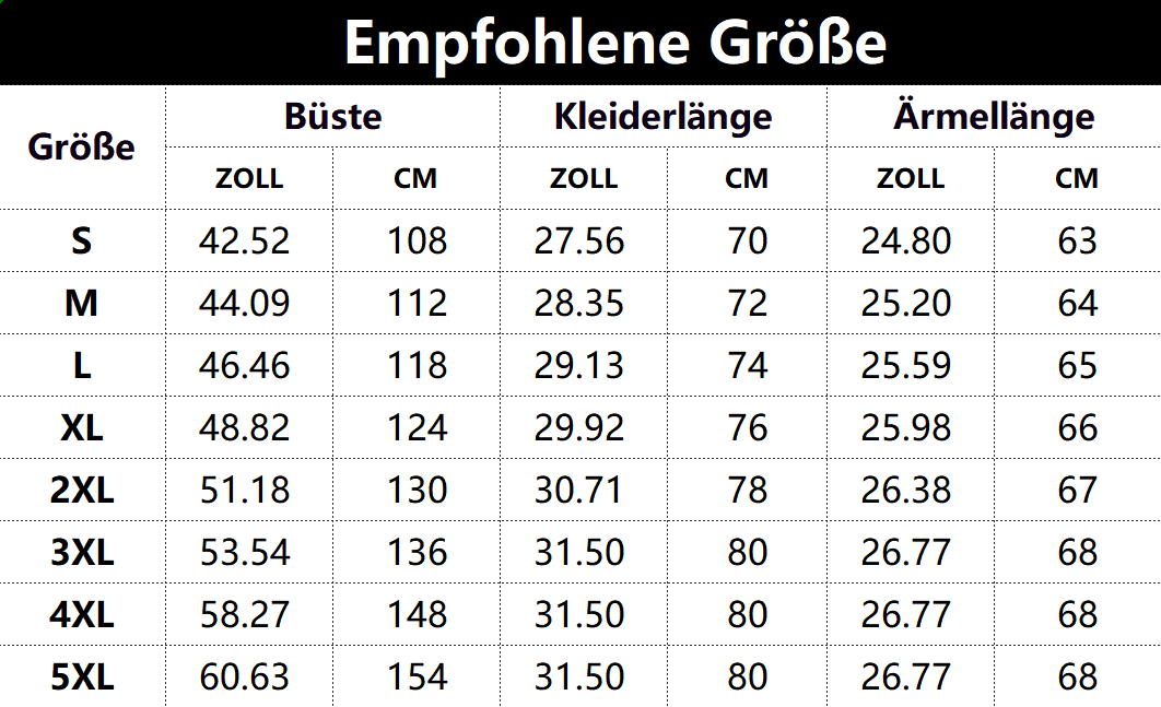 • Vorschlag:* Diese Daten wurden aus der manuellen Messung des Produkts erhalten, es kann um 0,03-0,06 ZOLL/1-3 CM aus geschaltet sein