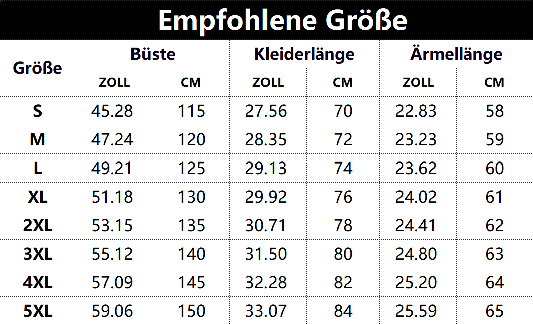 • Vorschlag:* Diese Daten wurden aus der manuellen Messung des Produkts erhalten, es kann um 0,03-0,06 ZOLL/1-3 CM aus geschaltet sein