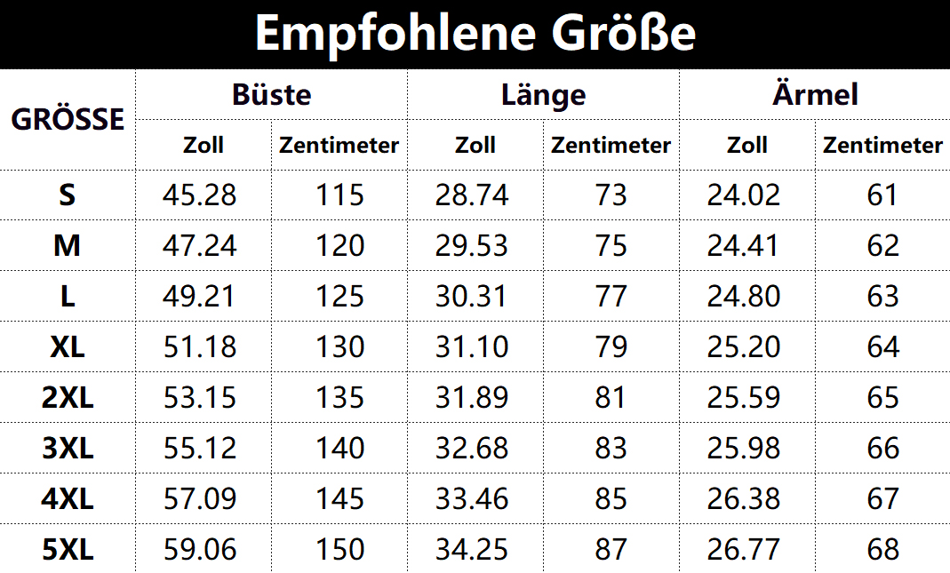 • Vorschlag:* Diese Daten wurden aus der manuellen Messung des Produkts erhalten, es kann um 0,03-0,06 ZOLL/1-3 CM aus geschaltet sein