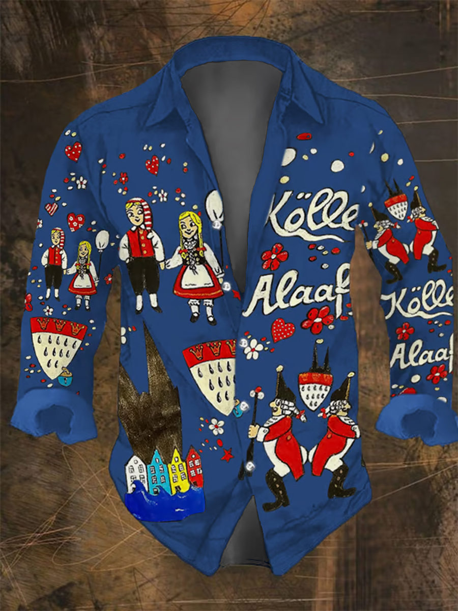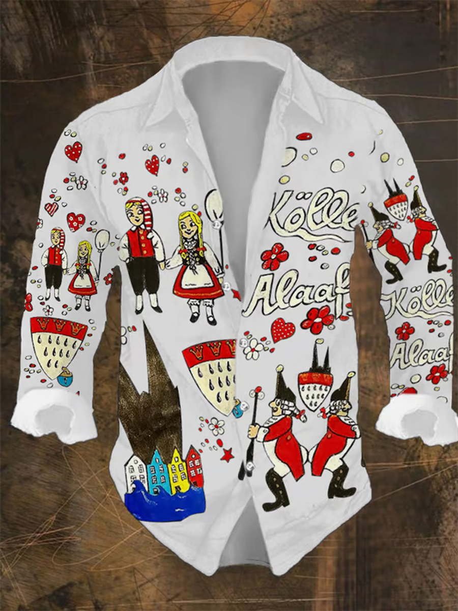 Herren Kölner Karnevals Print Lässiges Langarm-Shirt