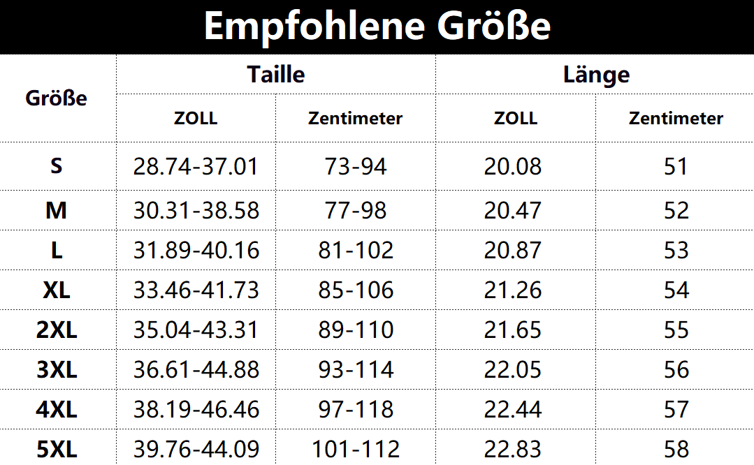 • Vorschlag:* Diese Daten wurden aus der manuellen Messung des Produkts erhalten, es kann um 0,03-0,06 ZOLL/1-3 CM aus geschaltet sein