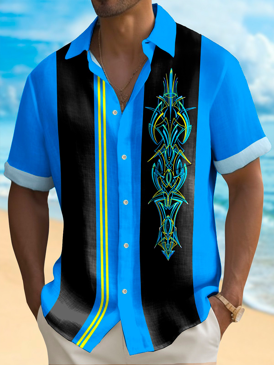 Herren Vintage Bowling Nadel streifen Kurzarm Shirt