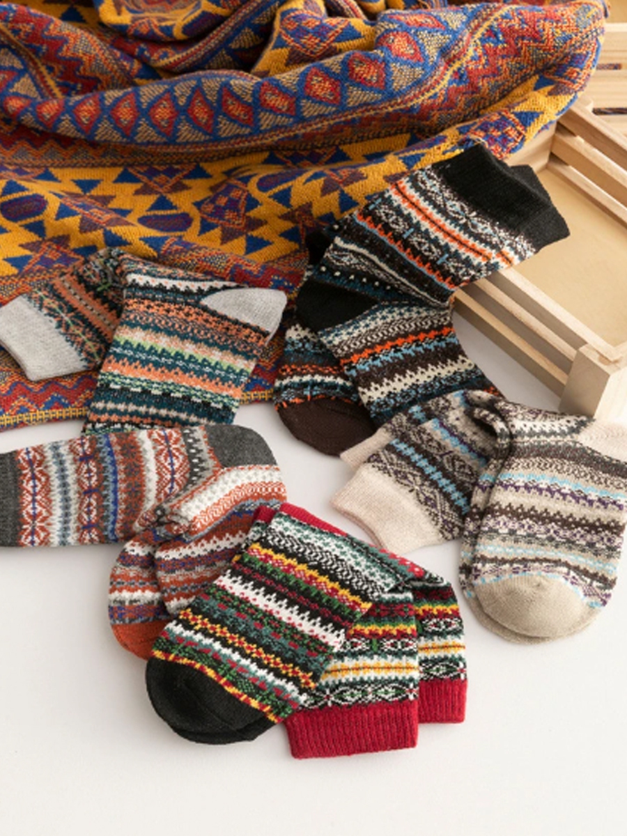 Herren-Warme Retro-Regenbogen-Kontrastierende Socken (5 Paar)