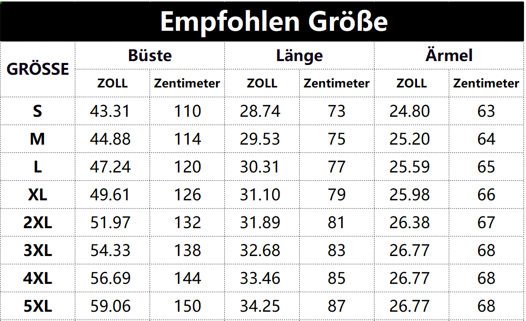 • Vorschlag:* Diese Daten wurden aus der manuellen Messung des Produkts erhalten, es kann um 0,03-0,06 ZOLL/1-3 CM aus geschaltet sein