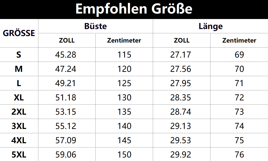 • Vorschlag:* Diese Daten wurden aus der manuellen Messung des Produkts erhalten, es kann um 0,03-0,06 ZOLL/1-3 CM aus geschaltet sein