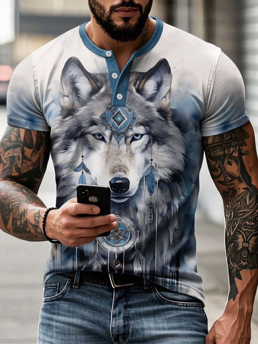 T-Shirts mit Aborigines-Wolf-Print für Männer